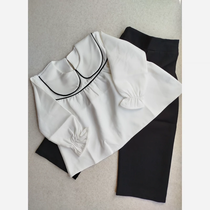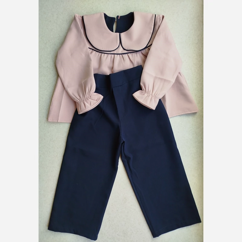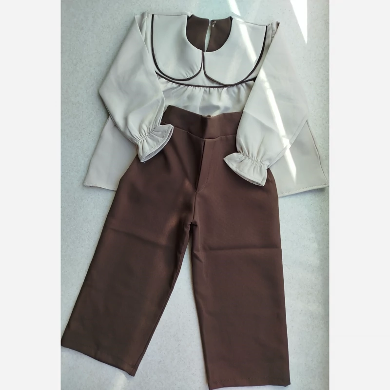 ست دخترانه مجلسی و عیدانه شومیز یقه ب ب نوار دوزی شده با شلوار کرپ مازراتی اعلا و دوخت بسیار تمیز