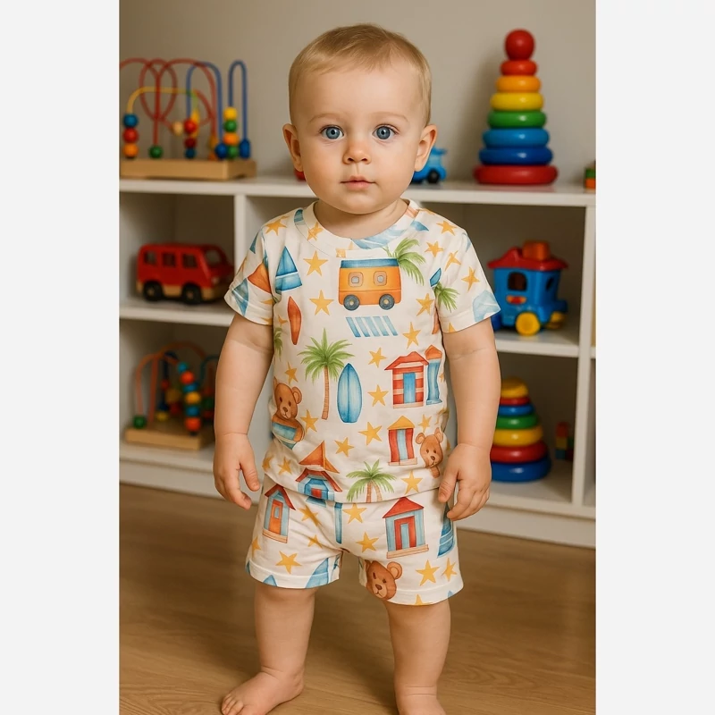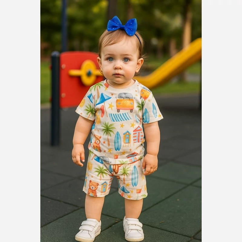 دستهبندی: پوشاک دخترانهسایز 35: عرض سینه 27 ، قد تیشرت 32 ، قد شلوارک 34سایز 40: عرض سینه 28 ، قد تیشرت 37 ، قد شلوارک 38